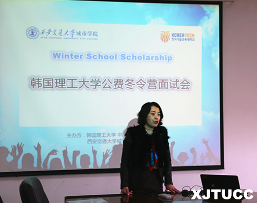 张薇老师介绍到近年来中韩两国在经贸、教育、人文等各方面的往来密切,提到韩国最大跨国企业三星入驻西安高新区,为留学韩国的国际化人才带来巨大的就业机率,希望更多学生可以赴韩交流,了解韩国顶尖的科学技术和特有的风俗文化;她讲到韩国理工大学作为一所综合实力较强的国立大学,目前与城市学院合作开展公费学期交流、公费三周冬令营、3+1+2本硕项目,并已进入到实质性合作阶段;她表示此次很高兴也很意外有十余名学生报名参加选拔,并且更让她惊艳的是同学们流畅的英文口语水平和清晰的未来职业规划思路,相信此批赴韩交流的学生一定会不虚此行,收获最难忘的专业学习经历和游学文化体验。最终来自传播系网媒151班的时晓阳,管理系财管151班徐萧弦2位同学以自信的英语口语展示和城院优异的成绩争取到公费名额,同时还有来自电信系、管理系的其他4名同学决定把握此次难得的机会以自费生身份参加交流,希望第一批赴韩冬令营6名学生可以通过前期手续准备、英文课程、丰富的课外活动收获难忘的寒假留学经历。