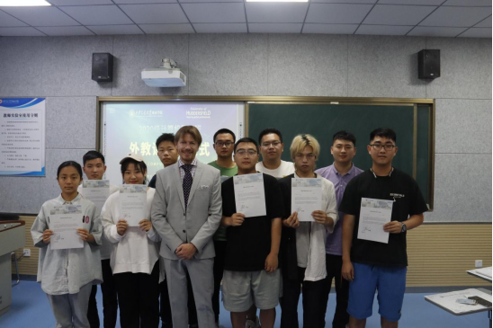 最后,外教Paul对每位同学在本学期的积极表现予以肯定,希望大家保有对英语学习的热情,在积极学习专业课的同时,学好雅思,提升英语思维,为未来的学业或职业道路打好基础。他为每位同学颁发了结课证书以及英国哈德斯菲尔德大学的推荐信,并与每人合影留念。大家也一一拥抱外教,感激他对大家认真教学的付出,感慨一个学期满满的收获。计算机国际班结课仪式在活跃热闹的气氛中圆满结束。