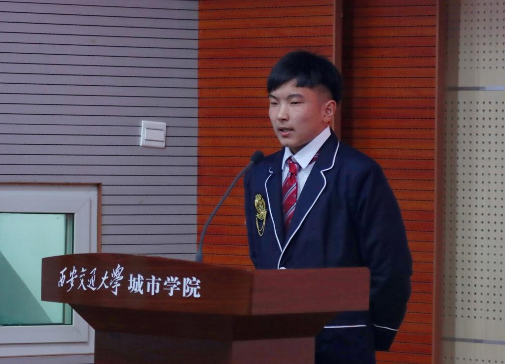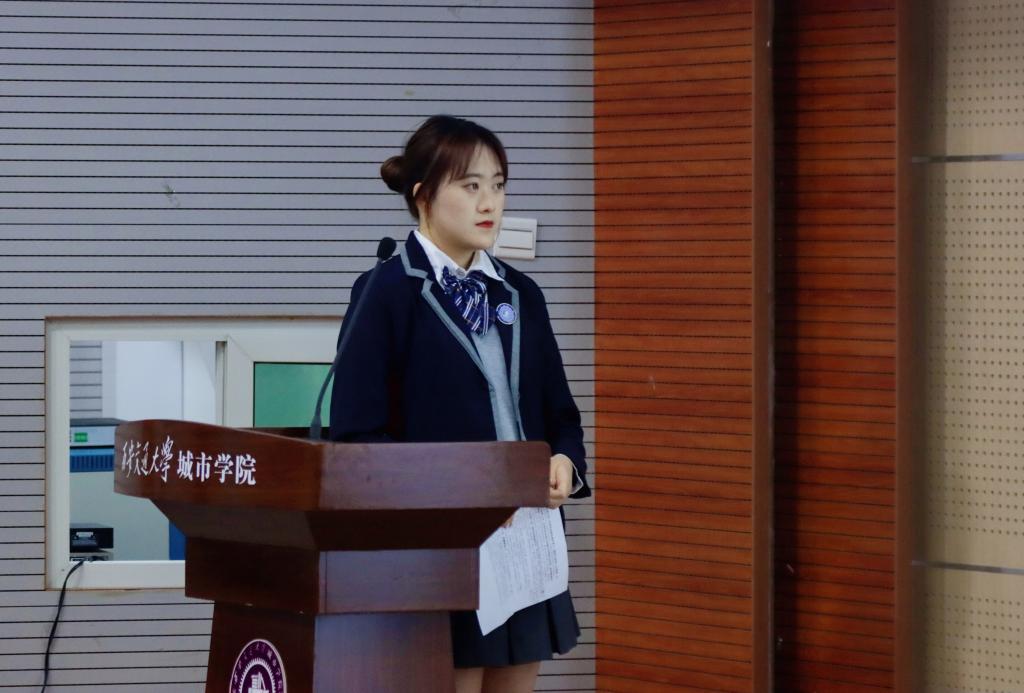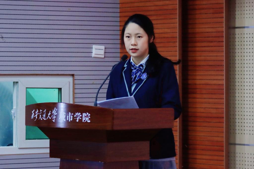 2020级金融国际班学生代表刘俞欣以“仰望星空,脚踏实地,争做新时代伟大精神的传承者”为主题进行了发言,表达了对城院国际班这个大家庭的热爱;2020级计算机国际班学生代表周仪文用中、英文进行了发言,讲述了自己从害怕说英语到现在勇于参加英语竞赛的心路历程,表达了对学院提供高效、高质量、高水平学习环境的感谢。