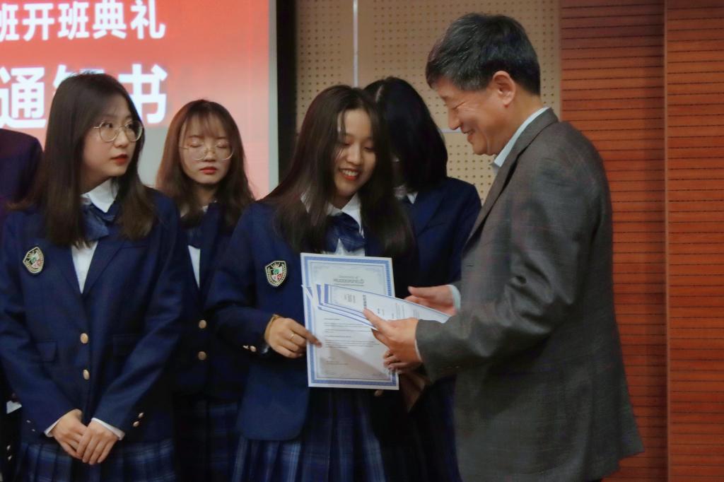 接着,学院领导为2021级国际班每位同学颁发录取通知书;大家也在“珍藏梦想卡”仪式感环节,依次上台用行动许下心中愿望,让每个人的梦想于小小卡片上闪闪发光。