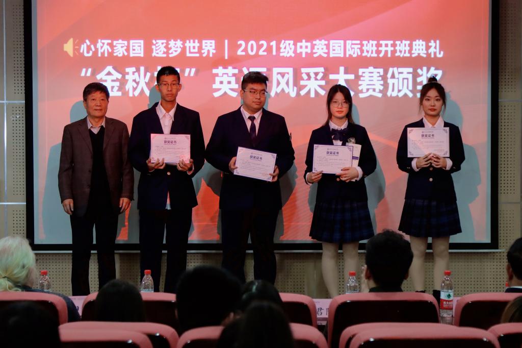 最后,学院领导为首届“金秋杯”英语风采赛的获奖学生颁发了荣誉证书及精美的奖品。据悉,他们投稿题材涉及全英歌曲演唱、团队英语配音、英文诗朗诵、全英主题演讲等,最终从五十余件投稿作品中脱颖而出,通过网络投票环节赢得了奖项。英语风采大赛旨在培养全院“学好英语、讲好英语”的学习氛围,调动学生们学习英语的积极性,展现全院学生的个性与智慧。