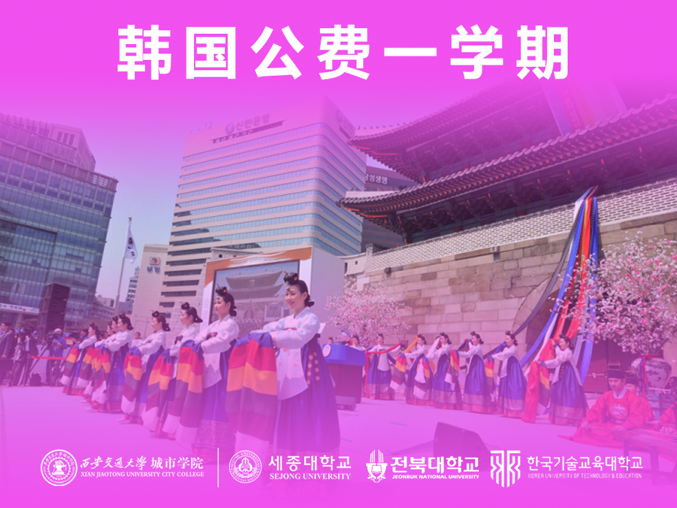 交换生赴韩国,使用英语或韩语,选择与本人专业相似的课程(见附件)学习。世宗大学为交流学生提供成绩报告单和中英文修读证明,西安交大城院根据有关规定为交换生认定和转换相应的学分,保证学生后续在城院的学业正常开展。 语言要求:有韩语3级者优先录取 |