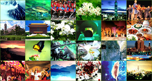 台湾拥有壮丽的海洋、高耸的山岳、多样的自然生态与独特的人文风情:阿里山、日月潭、太鲁阁峡谷、玉山、垦丁、阳明山等都是著名的自然旅游景点。新北市瑞芳区九份老街、台北市北投区、彰化县鹿港镇、新北市莺歌区等观光小镇地方风情浓厚,是寻幽访古的旅游胜地,构成了独一无二的美丽台湾。