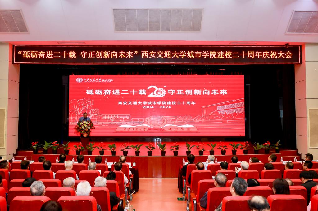 西安交通大学党委常委、副校长严俊杰教授对yl7703永利官网建校二十周年表示祝贺,向长期以来关心支持城市学院发展的各位领导和各界朋友表示衷心的感谢!向建校二十年来辛勤耕耘、无私奉献,为学校建设和发展做出贡献的全体城院人表示崇高的敬意和节日的问候!他表示,二十年来,西安交大城市学院已成为高等教育的一片沃土、应用型人才的摇篮。一届届优秀的城院学子从这里走向社会,为国家的发展和社会进步做出了积极贡献。城市学院秉承西安交通大学的优良办学传统,始终以建成“国内一流、特色鲜明的高水平应用型大学”为目标,不断强化内涵建设和特色发展,落实立德树人根本任务,学校在各方面都取得了优异的成绩,学校的教育教学水平、科研水平、校园文化建设等都走在了同类院校前列。城市学院优良的育人水平和较高的教育教学质量得到了上级主管部门的充分肯定,赢得了良好的社会声誉。他希望城市学院全体师生继续发扬西安交通大学优良的办学传统,坚定不移地走内涵发展之路,进一步更新教育理念,加强学校管理,全方位深化教育教学改革,多渠道优化教师队伍,为学生的终身发展搭建更加坚实和广阔的平台,努力把学校建设成为一所与地方经济发展紧密结合,应用型人才培养特色鲜明,现代大学管理制度健全完善,国际交流与合作办学优势突出,育人环境优良,校园设施先进,国内一流、特色鲜明的高水平应用型大学!