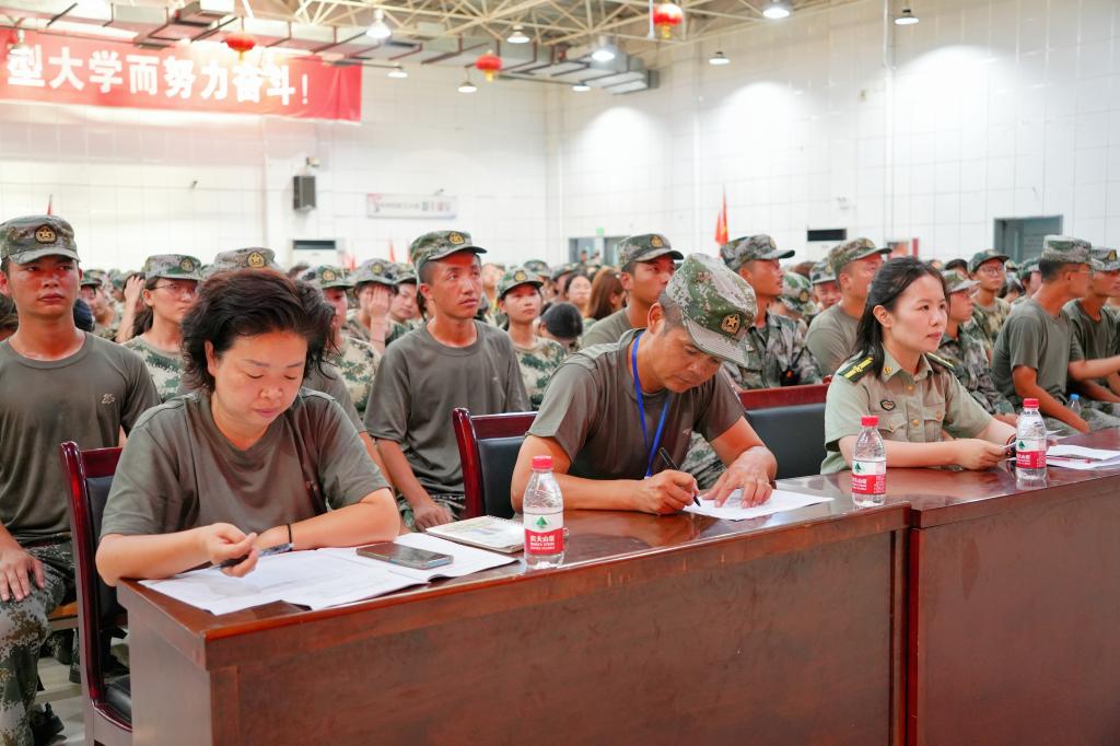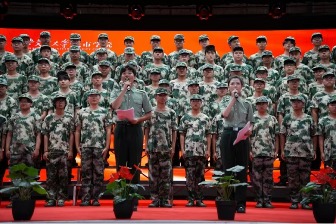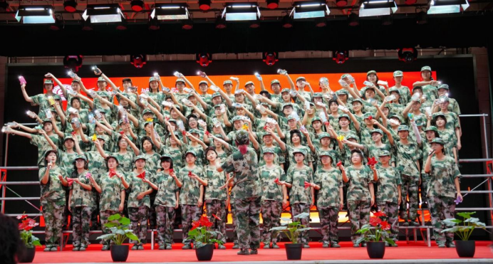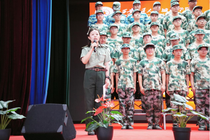 9月3日下午,军训团在大学生活动中心组织开展“歌唱祖国,奋进青春”歌咏比赛。党委书记张爱萍、全体教官、指导员及参训学员参加本次比赛,军训团营职以上干部担任评委。本次比赛由周林欣同学和成顾伟同学主持。